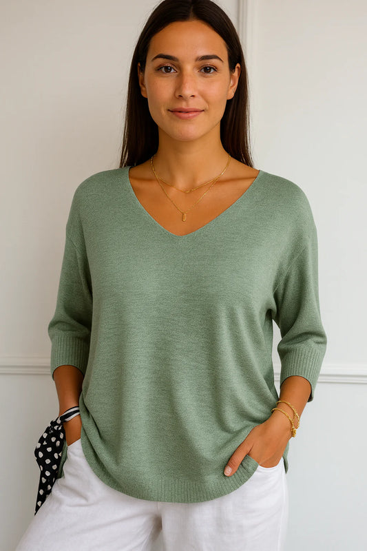 Damski sweter z dekoltem w serek i rękawem 3/4 | Styl casualowy
