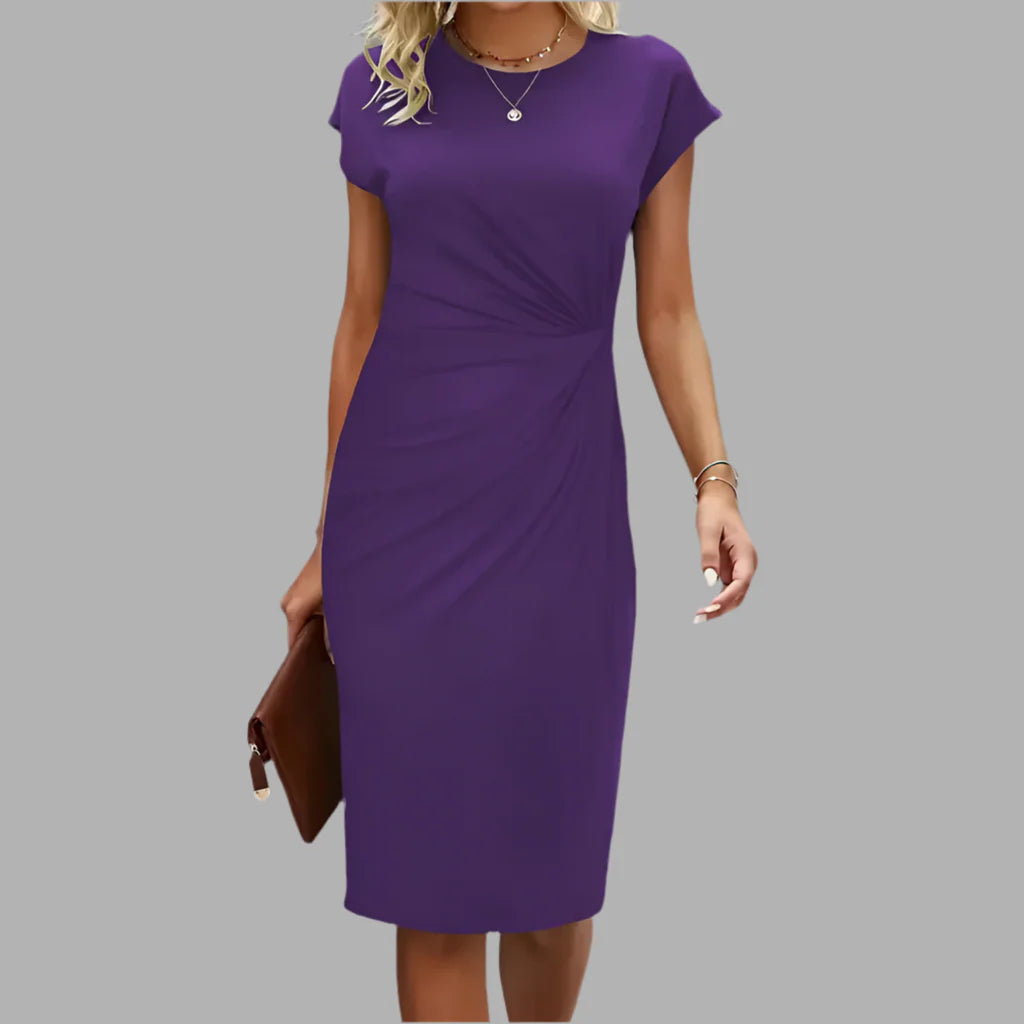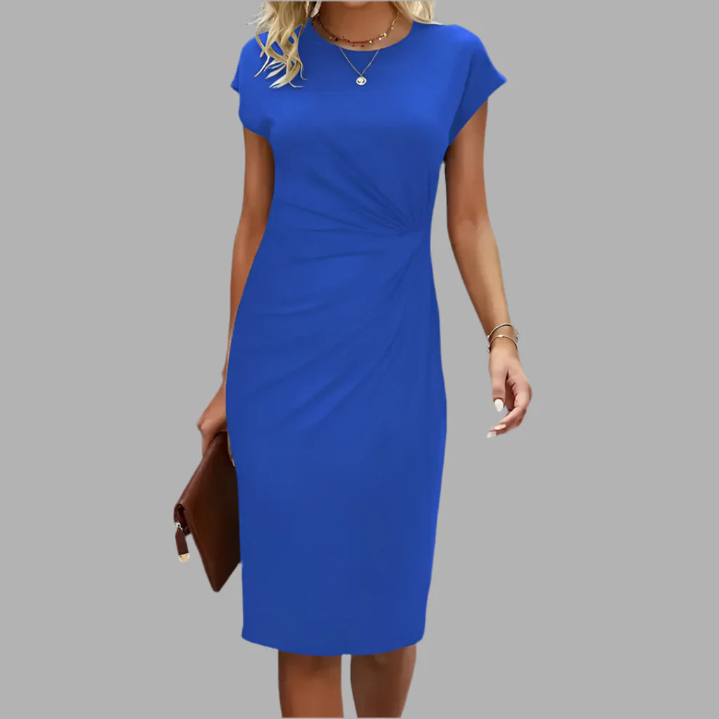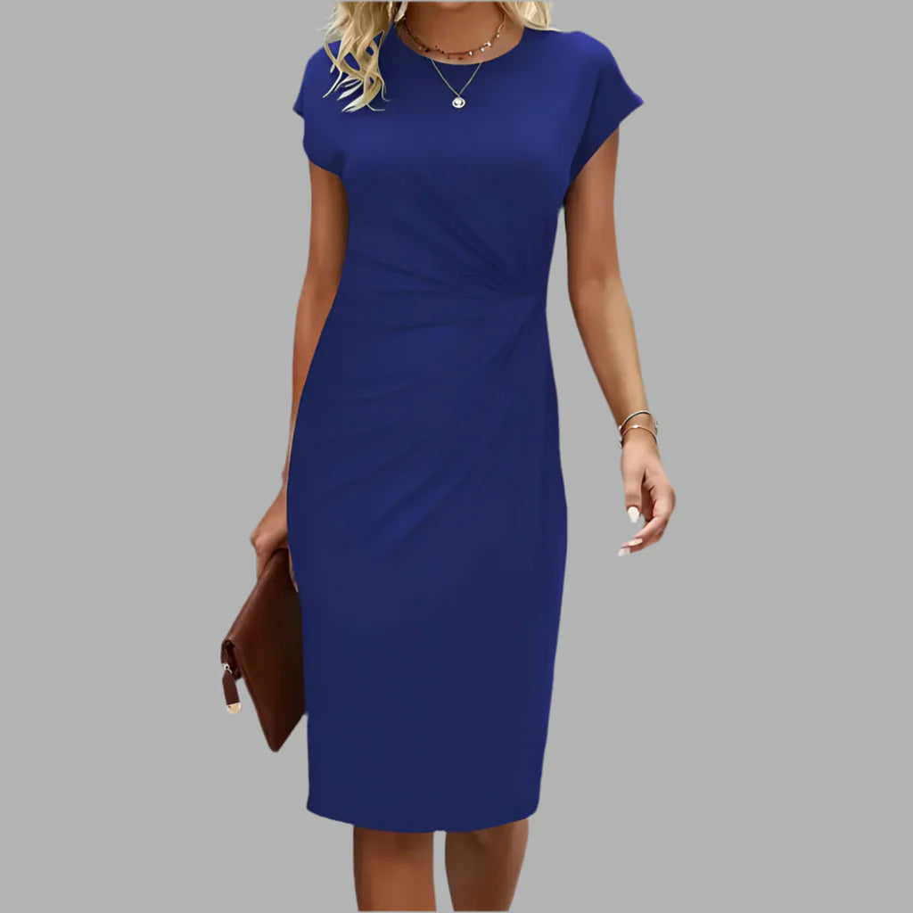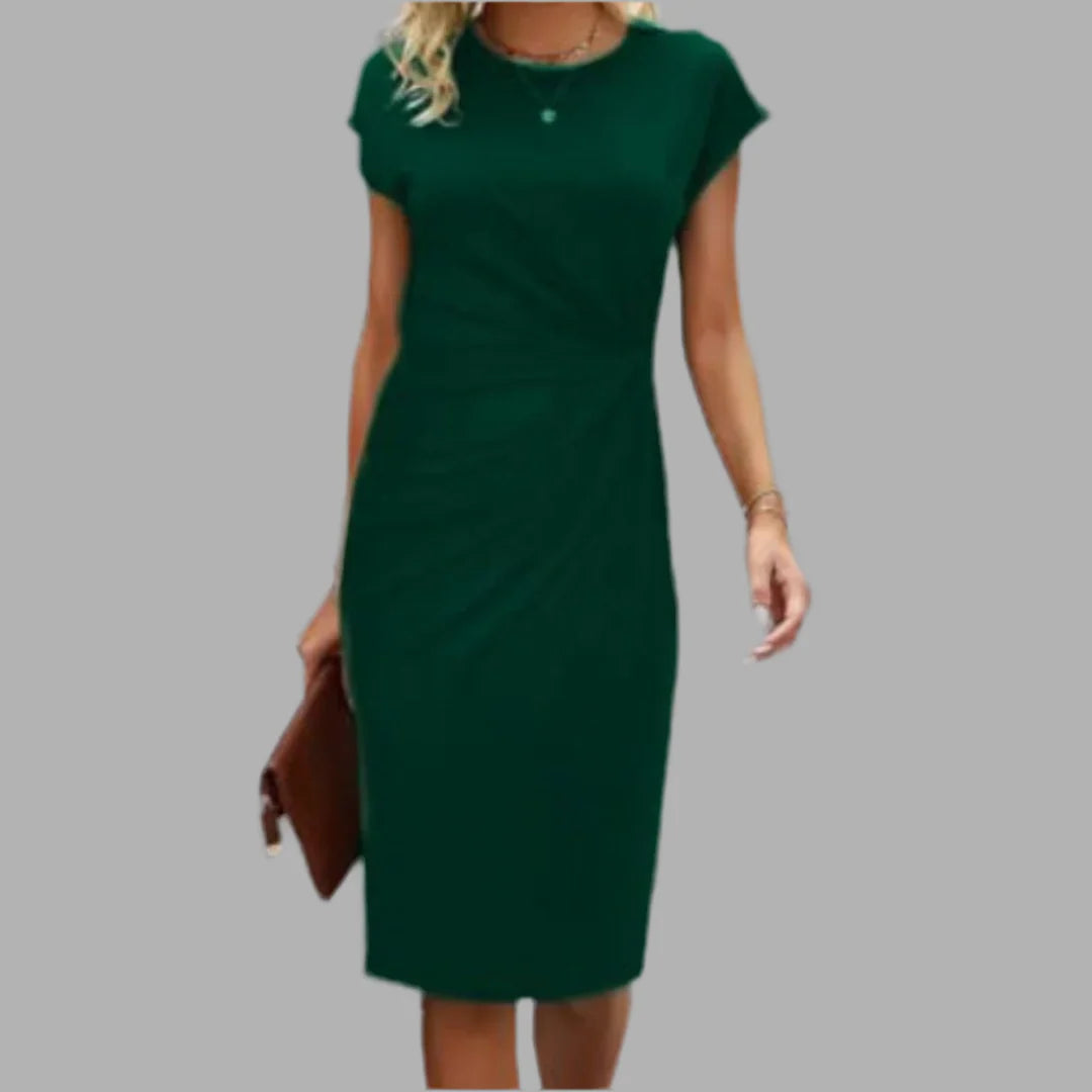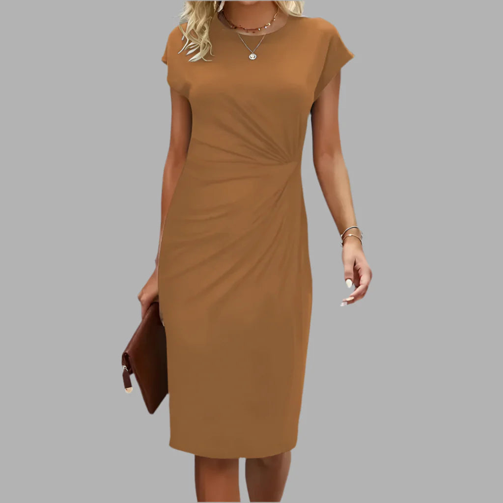 Damska sukienka midi z krótkim rękawem i marszczeniem w talii | Styl elegancki