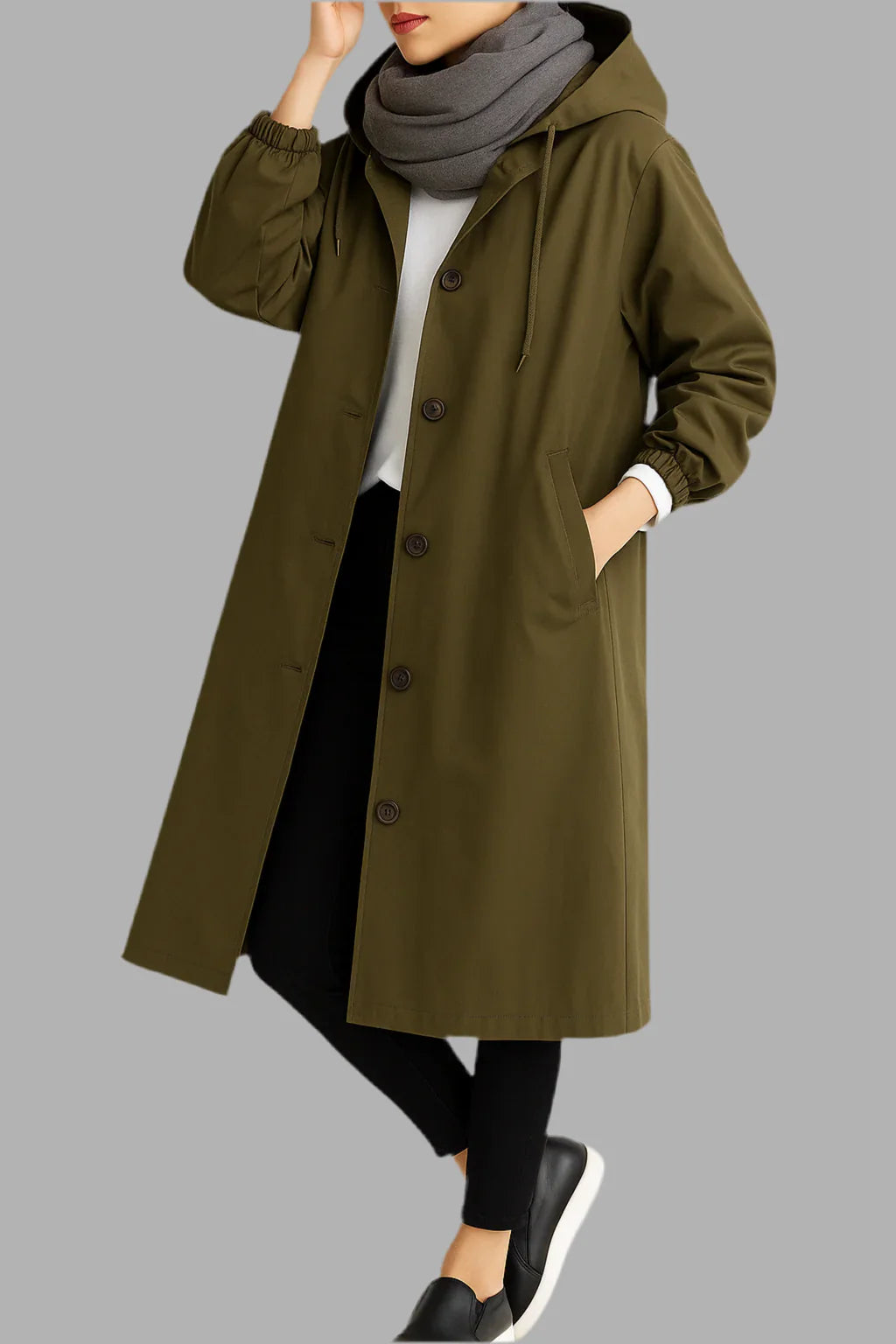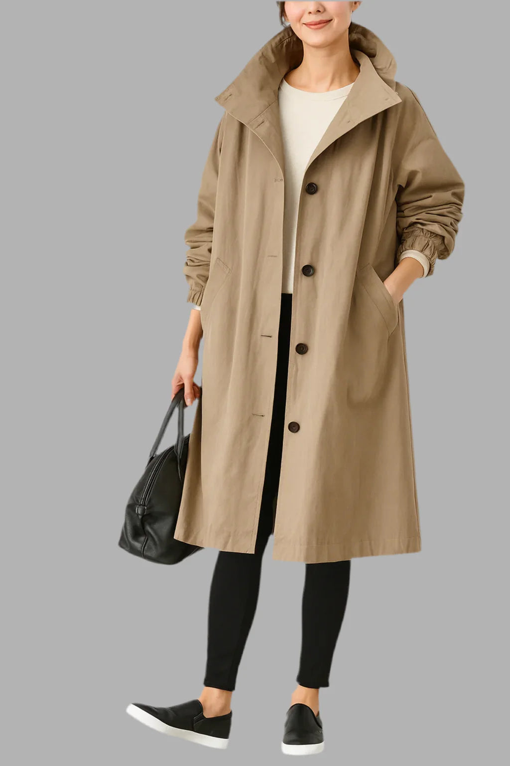 Damski płaszcz z guzikami o luźnym kroju | Styl elegancki